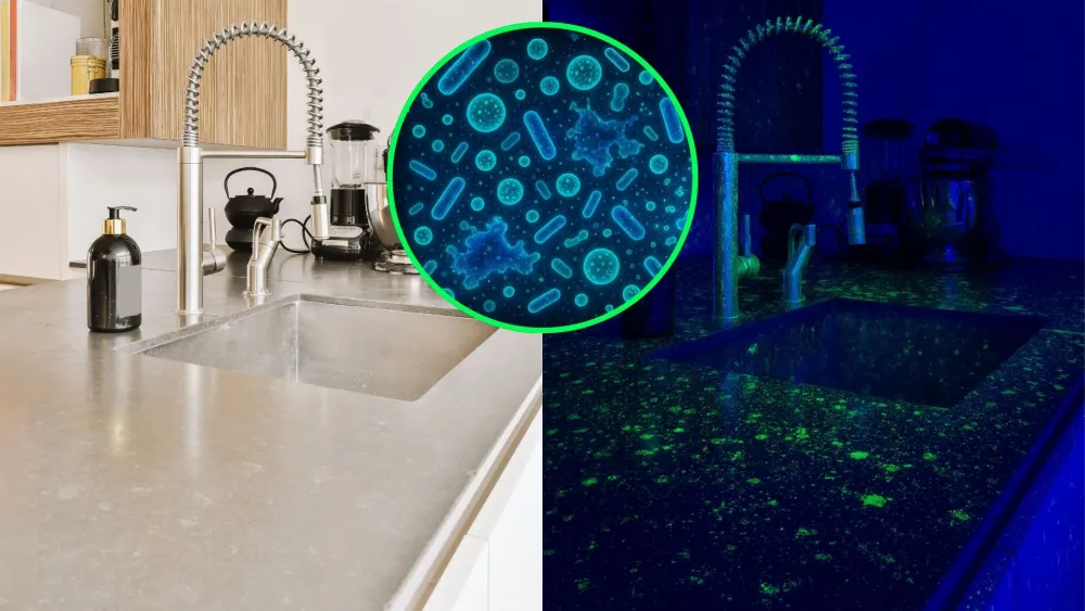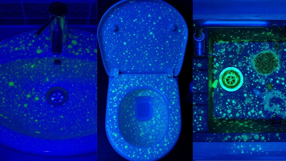 She showed before-and-after images using specialized detection equipment. Surfaces that appeared pristine lit up like Christmas trees under bacterial scanning — revealing colonies of:
